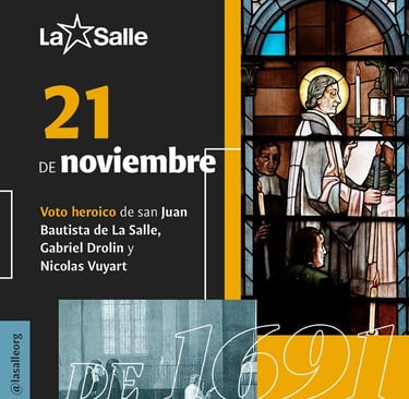El 21 de noviembre de 1691, en medio de una profunda crisis que amenazaba la continuidad del naciente Instituto, Juan Bautista de La Salle, junto con los hermanos Nicolás Vuyart y Gabriel Drolin, firmó lo que hoy celebramos como el voto heroico. El texto original expresa: “Nos consagramos a permanecer unidos para mantener la Sociedad, aunque solo quedáramos nosotros tres y aunque tuviéramos que vivir de pan y agua” (HHEECC, 2001). Esta decisión, tomada en una pequeña habitación del Hôtel de la Cloche, en Vaugirard, está lejos de ser una heroicidad romántica, sino ser la fidelidad radical a una Misión Educativa que se consideraba indispensable e impensable para los pobres de su tiempo.